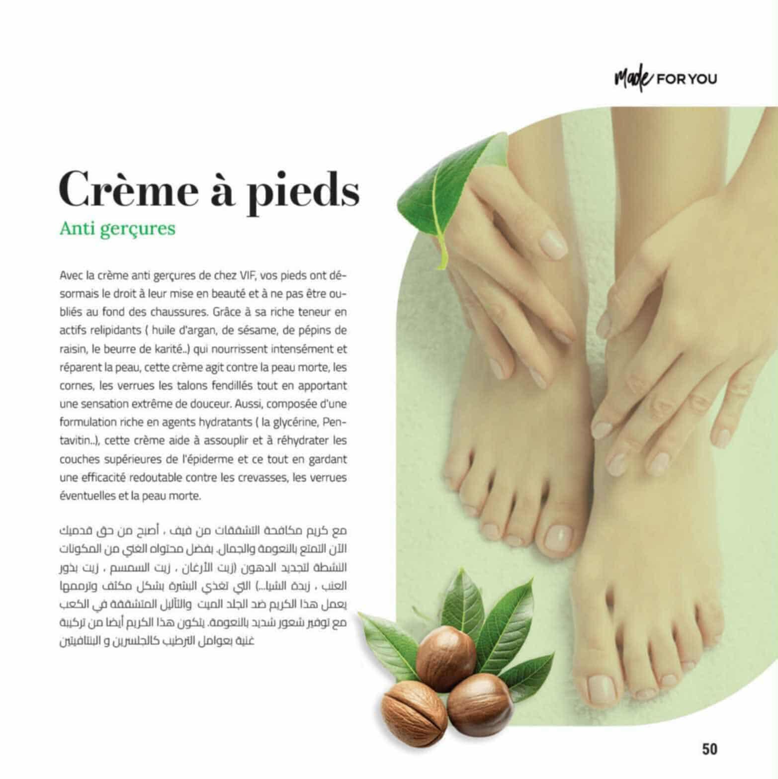 مع كريم مكافحه التشتققات اصبح من حق قدميك الآن التمتع بالنعومه و الجمال بفضل محتواه الغني من المكونات النشطه لتجديد الدهون ( زيت الارغان ، زيت السمسم ، زيت بذور العنب ، زبدة الشيا..)
